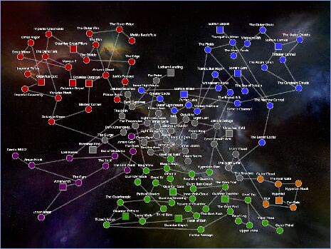 В этом документе вы сможете прочитать историю Вселенной Jumpgate. Большой Коллапс. Это было время света, это было время тьмы. Четыре системы процветали, поддерживая равновесие, достигнуть которого позволяло только мирное сосуществование. Каждая из известных систем имела нечто, что было предложено другим, и никто не отверг предложенного. Древние узы, тысячелетиями связывавшие традиционалистов империи Octavian и беспокойного содружества наций Solrain, были укреплены. Ожесточённая, казавшаяся нескончаемой, борьба между Quantar и Hyperial была завершена миром. И тогда случилось невероятное... для некоторых наступление религиозного Армагеддона, для других выпадение невозможного шанса... И по сей день никто не в состоянии полностью осознать произошедшее, но в мемуарах Desigrey Hettir, первого губернатора станции Cornea, сделана попытка предоставить самое простое из возможных описание. "Сильная вибрация неизвестного происхождения сотрясла структуру Вселенной. Целые планеты исчезали во вспышках яркого света, будучи разорваны на куски. Бесчисленное количество форм жизни, тысячи лет процветания и технологии, все, что имело смысл, исчезли в мгновение ока. Это было трагическое событие размеров больших, чем мы знали или когда-либо будем знать". - Desigrey Hettir, «Мемуары о Прошлом». ![]() "Пробуждение", масло, холст, из «Мемуаров о Прошлом». Когда осела пыль, остался лишь хаос и беспорядок. Планета Solrain, так долго служившая местом заседания трибунала четырех систем, исчезла. Хотя дистанционный контакт с огромными информационными базами данных планеты был все еще возможен, никто не мог точно определить ее физическое месторасположение. Вся связь между системами была потеряна. Карта Известных секторов (AT, После TRI). ![]() Первый рейс. Прошло несколько тысячелетий, в течение которых жители шестой планеты системы Solrain начали заново открывать тайны нового мира вокруг них. Древние технологии, поддерживавшие великую цивилизацию, оказались необъяснимо неэффективны. Действительно, это была трудная задача открыть вновь основополагающие природные принципы, которые теперь, казалось, управляли галактикой. Была создана программа восстановления Solrain Reconstruction Initiative (SRI) для преодоления этих препятствий и восстановление однажды утраченного началось. Некоторое время спустя, ученые SRI обнаружили странные флуктуации гравитационных полей в пределах галактики. После многих проб и ошибок, был создан первый гироскопический гравитационный стабилизатор. Великий мыслитель Sorian, Watt Jeffries Samon, догадался, что если бы удалось противостоять гравитационным флуктуациям, то космические полёты на большие расстояния могли бы снова стать реальностью. Его теории подтвердились, и были созданы первые «прыжковые врата». Аномалии гравитации в некоторых участках космоса стали широко известны под названием «гравитационных колодцев». Планы W.J. Samon состояли в том, чтобы создать искусственный стабилизатор, окружающий гравитационный колодец, позволяя таким образом материи одновременно существовать в двух совершенно разных участках космоса в одно и то же время. Если бы это сработало, космический корабль мог бы мгновенно «прыгнуть» между двумя точками. Два Sorian года спустя после начала постройки, команда храбрецов стартует в первый рейс на новом, специально предназначенном для перемещения через врата, корабле, кот